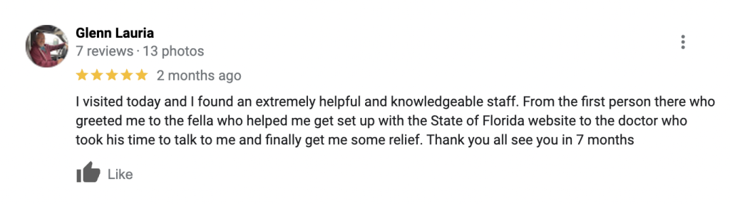 Florida state law explicitly lists the medical conditions for which you can receive a medical recommendation for a medicinal card. Our team of medical experts will perform a health assessment to determine whether your condition qualifies as per Florida state law. Get in touch with us today to find out if you’re eligible for a Florida medicinal card recommendation.